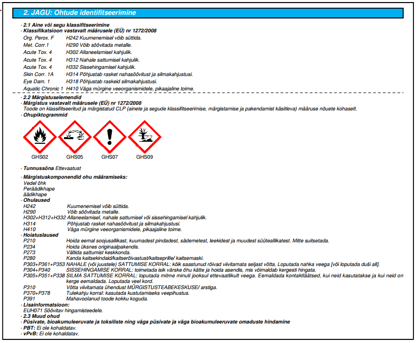 peroksüäädikhape, äädikhape, vesinikperoksiid, stabilisaatorid
